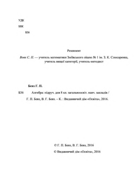 Підручник Алгебра 8 клас Нова програма Авт: Бевз Г. Бевз В. Вид-во: Освіта 15601