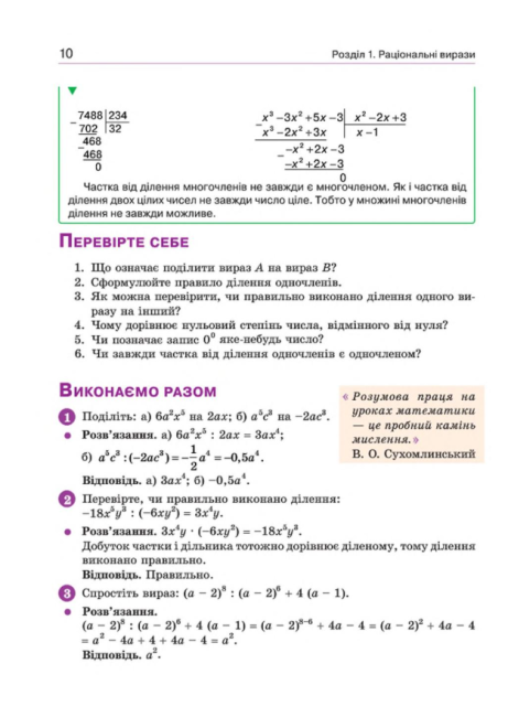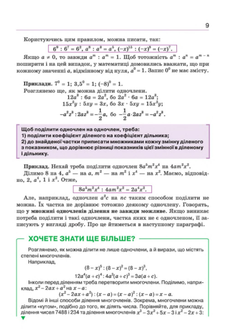 Завдяки такому структурованому і комплексному підходу підручник не лише навчає математичних концепцій, але й виховує в учнів критичне мислення, дослідницький підхід та здатність до самостійної роботи. Підручник створений для того, щоб мотивувати учнів до вивчення математики, надаючи їм вагомі стимули для подальшого навчання та розвитку.