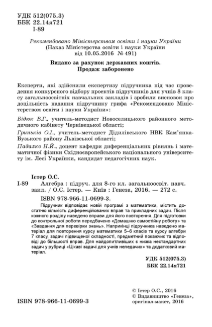 Підручник Алгебра 8 клас Нова програма Авт: Істер О. Вид-во: Генеза 15659