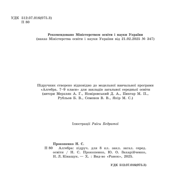 Підручник Алгебра 8 клас НУШ Авт: Прокопенко Н.С. та ін. Вид-во: Ранок 112058