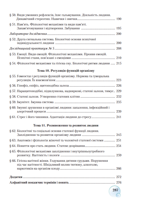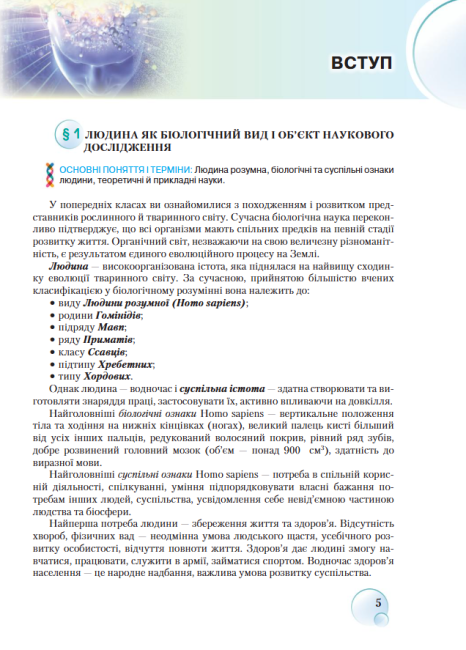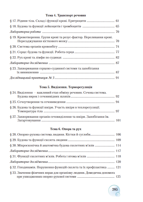 Підручник також розкриває важливі процеси життєдіяльності організму, пояснюючи механізми, які забезпечують підтримку здоров'я і нормальну функцію тіла. Окрім цього, в ньому детально висвітлюються механізми взаємодії організму людини з довкіллям, що сприяє розвитку екологічної свідомості учнів та допомагає їм усвідомити важливість гармонії між людиною і природою.