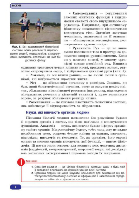 Підручник з біології для учнів 8 класу загальноосвітніх навчальних закладів, складений відповідно до Нової програми, є сучасним і інноваційним навчальним посібником, що поєднує новітні досягнення в галузі біологічних, педагогічних, методичних та психологічних наук. Це дозволяє зробити навчання не лише ефективним, а й цікавим для учнів. Підручник розроблений таким чином, щоб бути зручним як для учнів, так і для вчителів, забезпечуючи максимально комфортні умови для навчального процесу.
