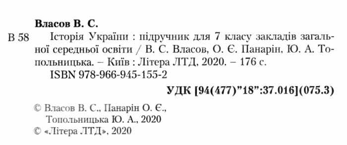 Підручник Історія України 7 клас 2020 Власов В. Літера
