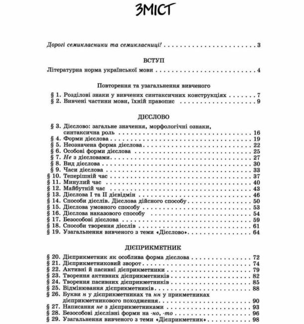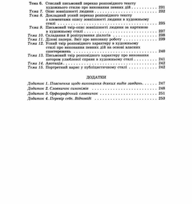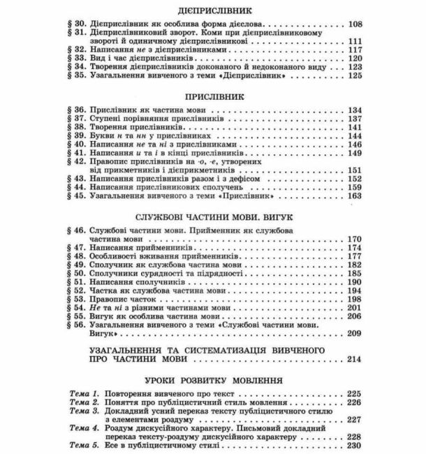 Зміст підручника спрямований на всебічний розвиток творчих здібностей та навичок самоосвіти учнів, а також на формування стійкого інтересу до вивчення української мови. Теоретичний матеріал структурований за підрозділами, де ключові поняття виділені для кращого запам'ятовування. Деякі відомості подані у вигляді таблиць і схем для зручності сприйняття інформації.