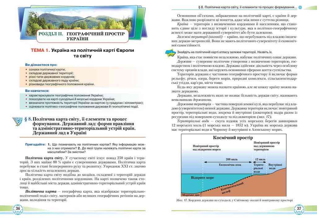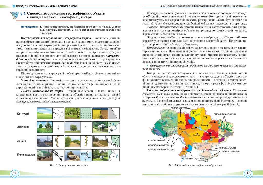 Підручник вирізняється наочною насиченістю: численні малюнки, фотографії, схеми, діаграми, таблиці та карти роблять матеріал доступним і захопливим.