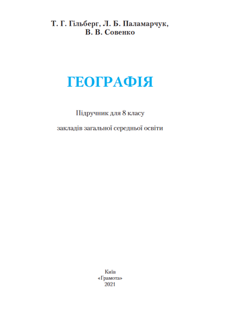 Підручник «Географія. 8 клас» авторів Т. Гільберг, Л. Паламарчук, В. Совенко, виданий у видавництві «Грамота», створено відповідно до нової програми 2021 року.