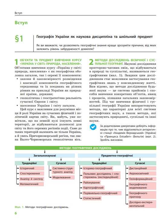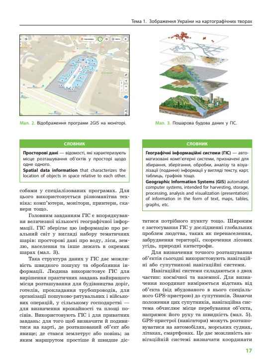 Формує в учнів уявлення про Україну як суб’єкт світового географічного простору. Матеріал підручника спрямований на формування знань про природу, територію й населення нашої країни, а також роль людини та її вплив на навколишнє середовище.
