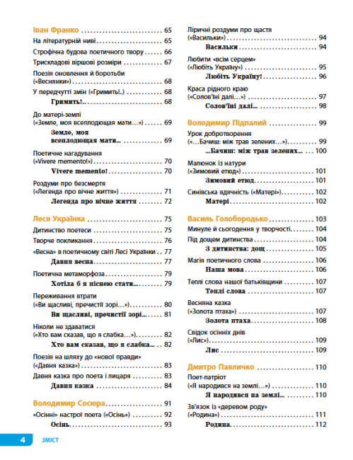Теоретичний матеріал і художні тексти: подані для засвоєння базових знань з української літератури та розвитку критичного мислення й творчих здібностей учнів.