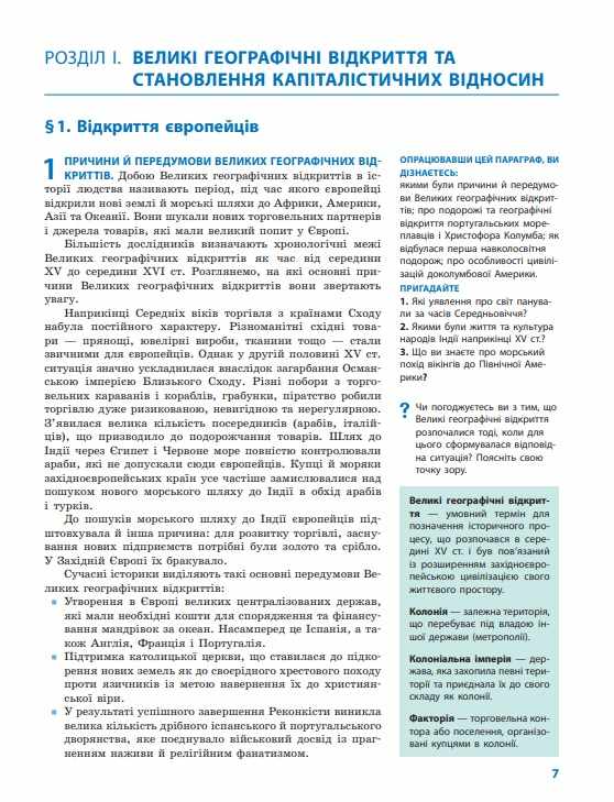 рубрики «Пригадайте», «Поміркуйте», «Дослідіть», «Цікаво знати», які стимулюють критичне мислення й історичну уяву.