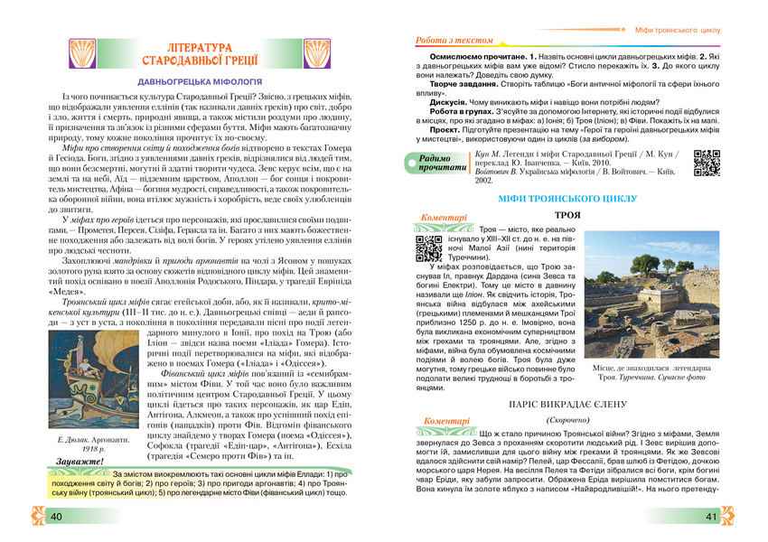 Рубрики підручника: «У просторі читання», «Ключі до твору», «Словник термінів», «Україна і світ», «Культура різних народів» та ін. До підручника створено авторські мультимедійні матеріали QR-коди експрес-уроки, відеотексти й аудіотексти, усього понад 30 файлів.