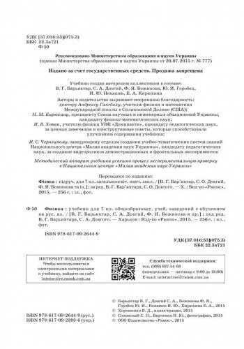 Учебник Физика 7 класс Новая программа Авт: Барьяхтар В. Довгий С. Изд-во: Ранок