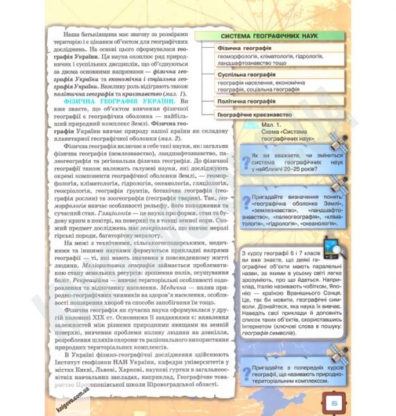 Підручник з Географії для учнів 8 класу загальноосвітніх навчальних закладів складено за Новою програмою