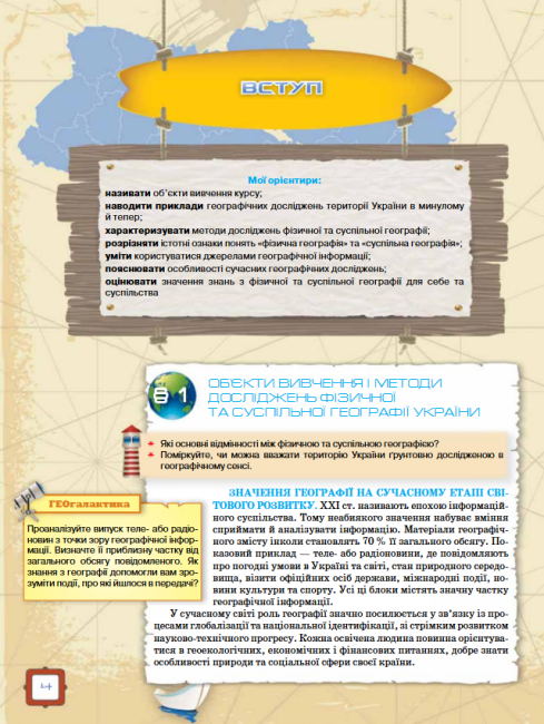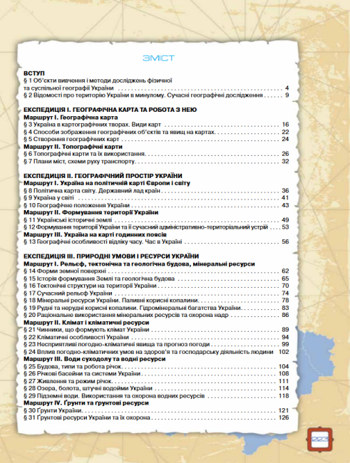 Підручник з географії для учнів 8 класу загальноосвітніх навчальних закладів, складений за Новою програмою, пропонує учням всебічне вивчення географії та допомагає глибше зрозуміти взаємозв’язок між природними умовами та розвитком економіки, соціальних процесів і культури. Підручник містить матеріали, що відповідають вимогам сучасної освіти, і розглядає ключові аспекти географічної науки, такі як: