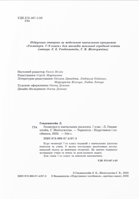 Підручник Геометрія У навчальних діалогах 7 клас НУШ Авт: Л. Генденштейн Г. Жемчужкіна Вид-во: Підручники і посібники 90909
