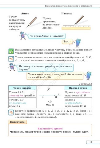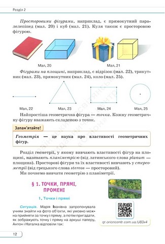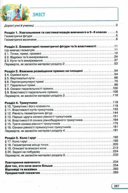 Хочеш добре знати геометрію? Тоді старанно навчайся разом із нашим підручником. Для гарного запам'ятовування весь навчальний матеріал ми розділили на п'ять основних розділів, а їх — на параграфи. Кожен із параграфів має у собі теоретичний матеріал та практичні задачі. Під час вивчення теорії, будь ласка, звертайте увагу на той текст, що знаходиться у рамці, бо це найголовніші означення понять та властивості фігур. Їх потрібно добре знати та вміти застосовувати, вирішуючи задачі. Усі інші важливі правила виділені жирним шрифтом, а терміни і наукові назви — курсивом. В кінці кожного параграфу розміщена рубрика “Пригадайте головне”, за допомогою якої можна перевірити, як був засвоєний матеріал, повторивши його і відповівши на запитання. А контрольні питання і тести наприкінці кожного розділу допоможуть зрозуміти, чи добре була засвоєна тема.