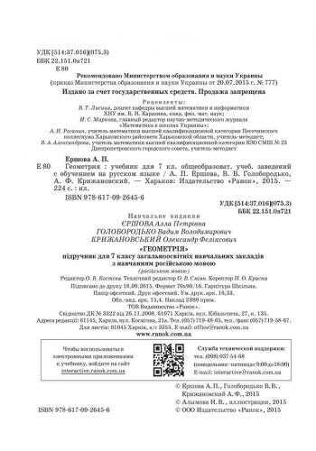 Учебник Геометрия 7 класс Новая программа Авт: Ершова А.П. Голобородько В.В. Крижановский А.Ф. Изд-во: Ранок 14196