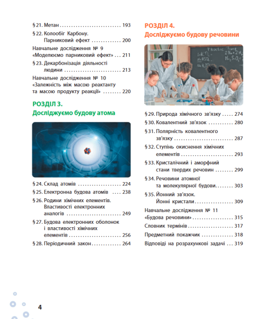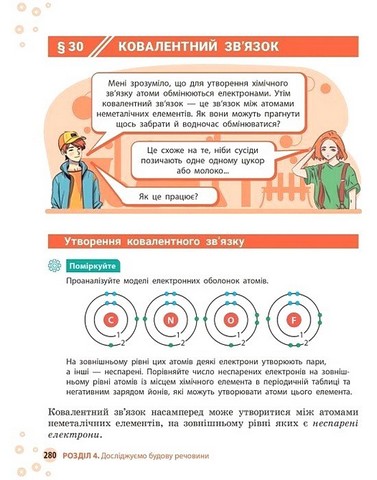 Підручник містить зрозумілі та доступні пояснення основ хімічних процесів, практичні приклади, які допомагають візуалізувати й застосовувати вивчений матеріал у житті.
