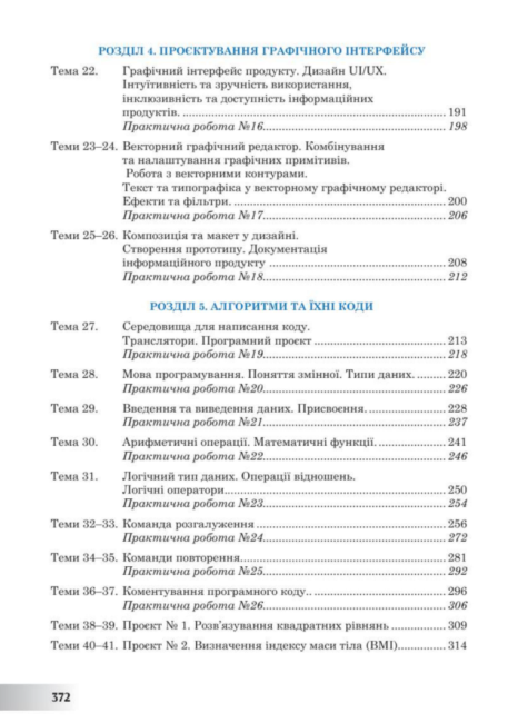 У підручнику системно викладено навчальний матеріал відповідно до вимог чинної освітньої програми. Зміст орієнтований на формування в учнів та учениць ключових компетентностей у галузі інформатики: уміння працювати з інформацією, використовувати цифрові технології для навчання, творчості й повсякденного життя.