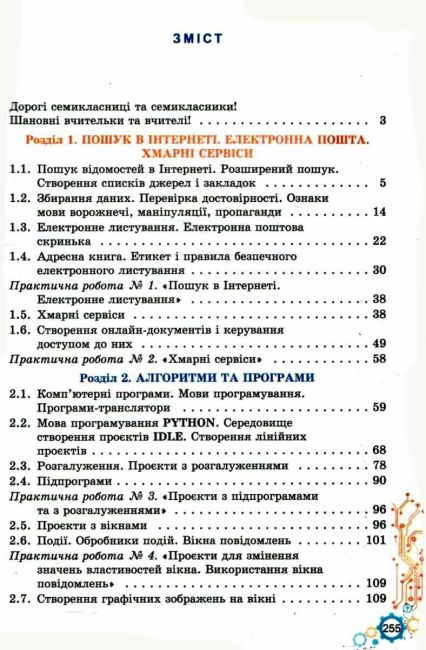 Навчальний матеріал підручника відповідає модельній навчальній програмі «Інформатика. 7–9 класи» (автори: Ривкінд Й. Я., Лисенко Т. І., Чернікова Л. А., Шакотько В. В.) для закладів загальної середньої освіти і поділено згідно з програмою на 6 розділів.