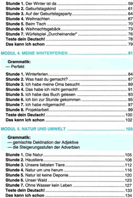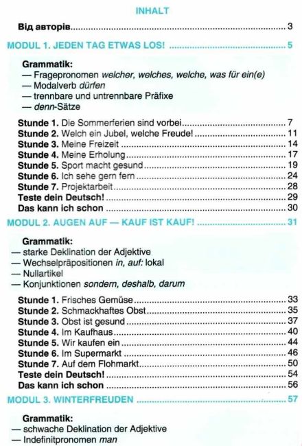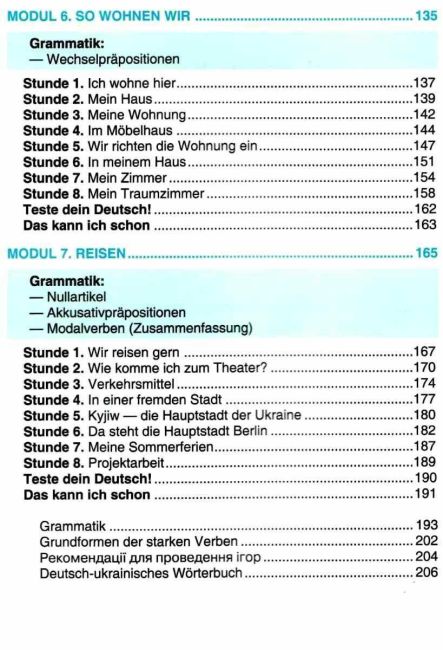 Підручник з Німецької мови для 7 класу за Новою програмою містить сім розділів, які складаються з уроків для закріплення та узагальнення навчального матеріалу. Підручник сприяє формуванню в учнів навичок і розвитку вмінь в усіх видах мовленнєвої діяльності: аудіюванні, читанні, говорінні та письмі.
