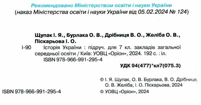Підручник Історія України 7 клас НУШ Авт: Щупак І.Я. та ін. Вид-во: Оріон 101681