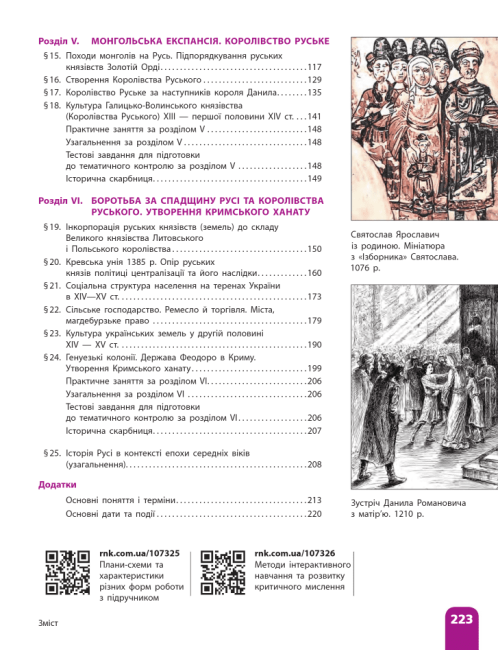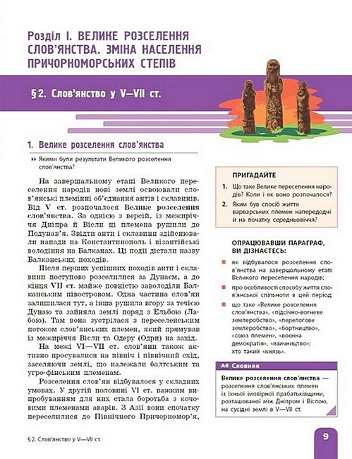 Підручник створено відповідно до модельної навчальної програми «Історія України» (авт. О. Гісем, В. Бойко, Я. Василенко, В. Даниленко, О. Мартинюк, О. Охредько, О. Сирцова, Т. Тарасюк) й охоплює період історії України від Великого розселення слов'янства (V—VII ст.) до початку XVІ cт. Зміст підручника спрямований на розвиток пізнавального інтересу учнівства. Методичний апарат дозволяє реалізувати діяльнісний підхід, сприяє формуванню навичок самостійної роботи з інформацією та її використанню у практичній діяльності.