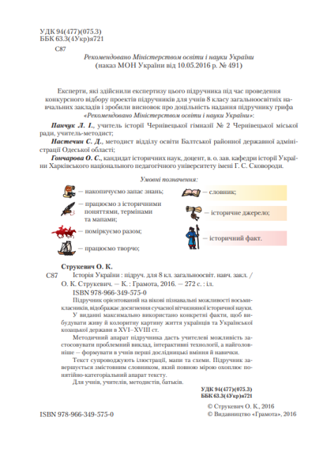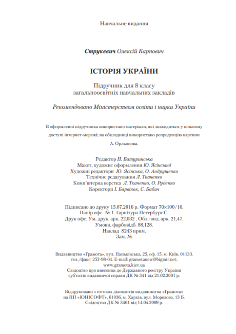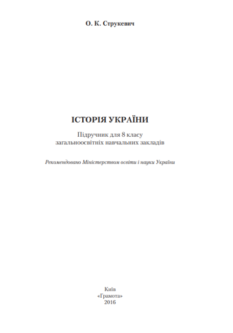 Підручник Історія України 8 клас Нова програма Авт: Струкевич О. Вид-во: Грамота 15988