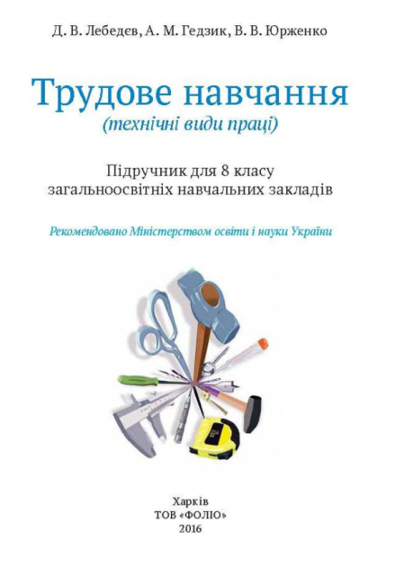 Підручник з трудового навчання "Технічні види праці" для 8 класу загальноосвітніх навчальних закладів, автори — Д. Лебедєв та Сиція, створений відповідно до нової програми і спрямований на формування технологічно освіченої особистості. Метою підручника є надання учням необхідних знань і практичних навичок, що допоможуть їм не лише засвоїти теоретичний матеріал, але й оволодіти базовими технічними уміннями, які є важливими для сучасного суспільства.