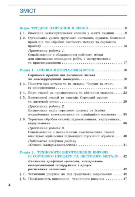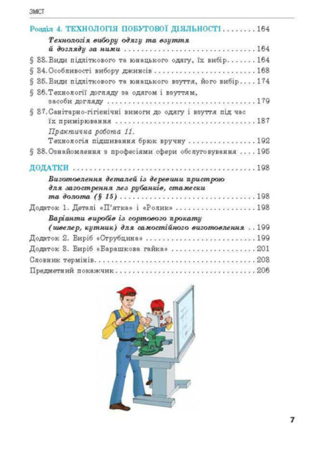 Теоретичний матеріал. Підручник містить структурований теоретичний матеріал, що дає змогу учням освоїти основи технічних видів праці, ознайомитися з різними технологіями та процесами, які використовуються в сучасному виробництві. Теорія супроводжується ілюстраціями та поясненнями, що полегшують засвоєння складних концепцій.