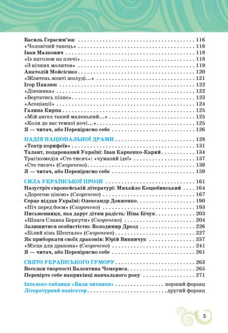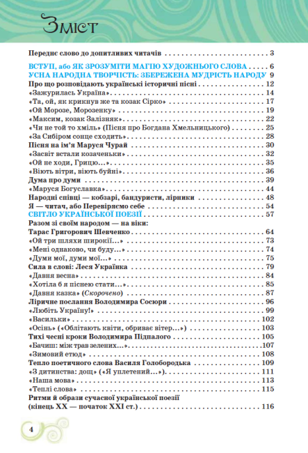 Включає теоретичні відомості з літературознавства, які полегшують роботу з текстами та сприяють формуванню навичок аналізу і порівняння літературних явищ.