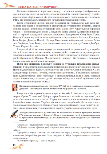 Ілюстрації в підручнику допомагають учням визначати особливості художньої творчості, осягати естетичні цінності української культури та розвивати уяву.