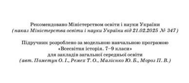 Всесвітня історія: підручник для учнів та учениць 8 класу закладів загальної середньої освіти.