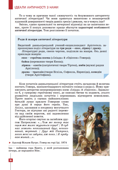 Підручник пропонує учням всебічне вивчення зарубіжної літератури, ознайомлюючи їх із класичними творами та сучасними авторами, що сприяє формуванню естетичного смаку, розширенню кругозору та розвитку критичного мислення. Крім того, підручник містить завдання для аналізу текстів, що дозволяють учням краще зрозуміти зміст творів і побачити їх значення у контексті світової літератури та культури.