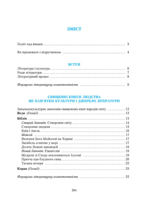 Особлива увага приділена священним книгам людства, які стали основою для багатьох культурних і літературних традицій. Це дає можливість учням глибше зрозуміти літературні джерела і впливи на розвиток цивілізацій. У підручнику наведено біографії письменників з різних країн, що дозволяє вивчити їхні творчі шляхи та літературну спадщину.