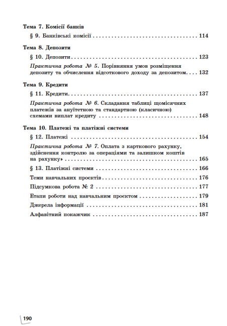 Підручник містить навчальний матеріал тем «Гроші», «Гривня — національна валюта України», «Валюта», «Планування та ведення сімейного бюджету», практичні роботи, а також роботу для контролю теоретичних знань за вказаними темами.