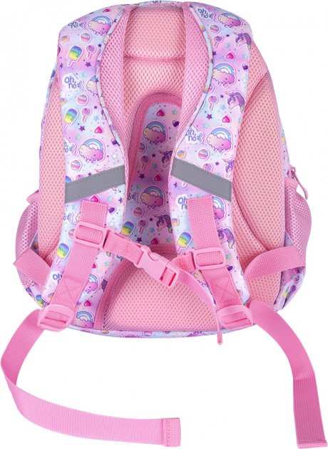 Ранець Astrabag 502021004 рожевий 39x28x15, 3 вiд, полiестер AB330 Unicorn ортопедичний свiтловiдб. У центрі переднього відділу є відділення для аксесуарів, телефон, карабін для ключів, кишеня на блискавці, кишеня.