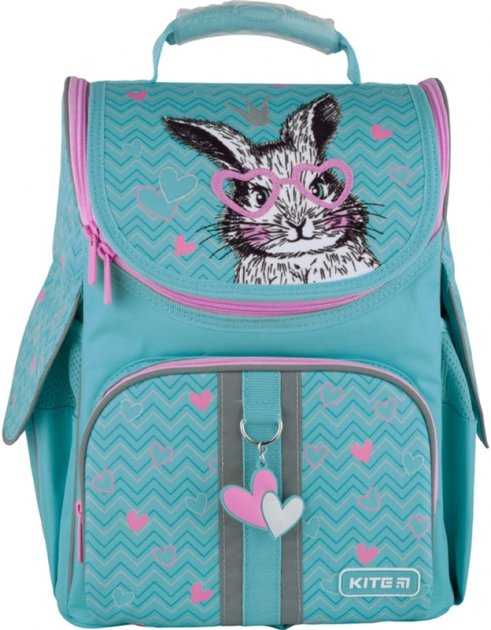 Ранець Kite 21 K21-501S-4 бiрюзовий 35х25х13, 960 гр, полiестер 501 Cute Bunny бірюза зайчик ортоп. сп. каркасний свiтловiд. ел.