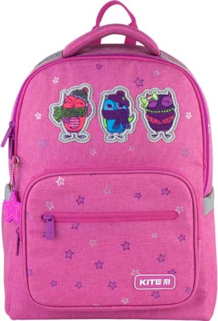 Ранець Kite 21 K21-770M-3 рожевий 38x27x13, 720 гр, полiестер 690 Better together ортоп. сп. свiтловiд. ел. Виконаний з міцного поліестеру. Передню панель прикрашають три подружки-совушки в елегантних вбраннях. Нашивки яскраві і об'ємні, обрамлені светоотражающим контуром. Лаконічне доповнення декору - яскрава підвіска «зірочка», яка перегукується з «зоряним» принтом. Насичений рожевий колір порадує маленьку принцесу.