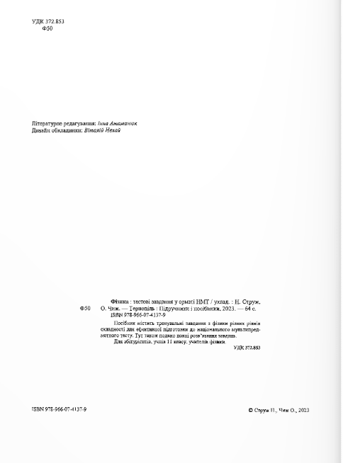 Фізика. Тестові завдання у форматі НМТ. Струж Н. ПІП. 86406