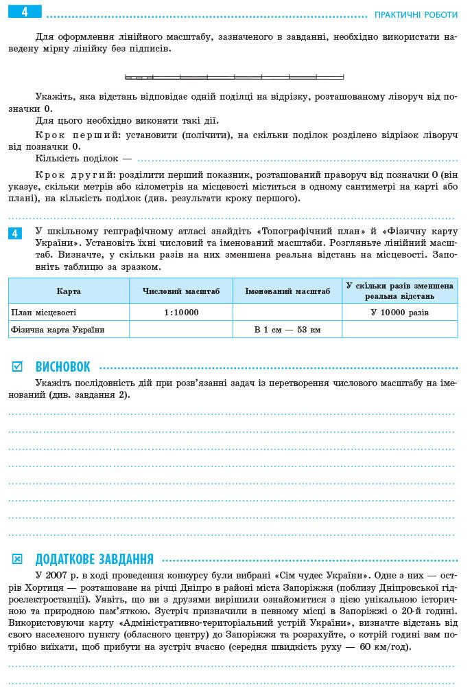 Зошит містить практичні роботи, завдання яких розроблені відповідно до нової навчальної програми з географії Міністерства освіти і науки України. Вони спрямовані на формування вмінь учнів застосовувати теоретичні знання у практичній діяльності, на створення основи для адаптації школяра до навколишньої діяльності, сприяння розвитку його загальної культури. У зошиті вміщені всі необхідні контурні карти. До підручника «Географія» Пестушко В. Ю. та Уварової Г. Ш., підручника «Географія» Гільберг Т. Г. і Паламарчук Л. Б. та інших підручників.