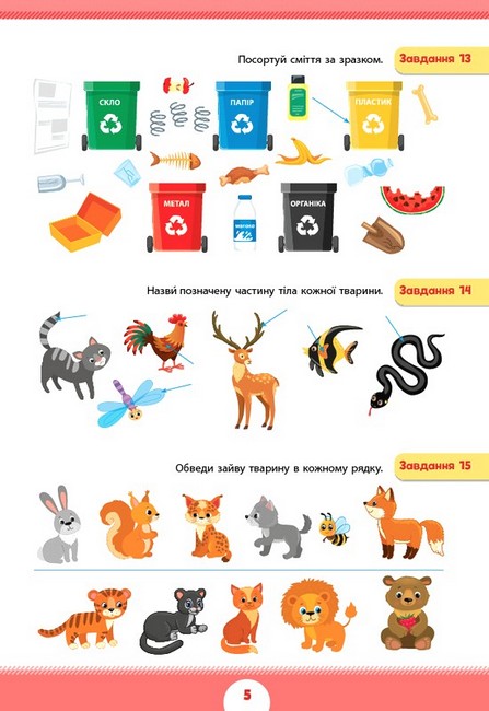 Із книжкою «Світ навколо мене» дитина відпрацює правила безпеки вдома й на вулиці, закріпить знання про диких і свійських тварин й особливості їхньої зимівлі; потренується розрізняти матеріал предметів і сортувати їх; навчиться встановлювати послідовність подій та орієнтуватися в днях тижня і місяцях.