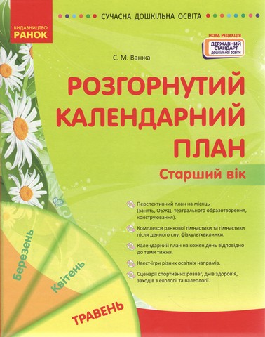 У посібнику подано перспективний та розгорнутий календарний плани організації освітньо-виховного процесу з дітьми старшого дошкільного віку. План укладено за блочно-тематичним принципом на один місяць, потижнево. Окрім основного матеріалу, видання пропонує сценарії заходів і твори художньої літератури, покликані полегшити роботу вихователя.