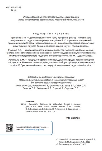 Робочий зошит Здоров'я, безпека та добробут 5 клас НУШ Авт: Шиян О. Волощенко О. Дяків В. Козак О. Седоченко А. Вид-во: Світич 87685