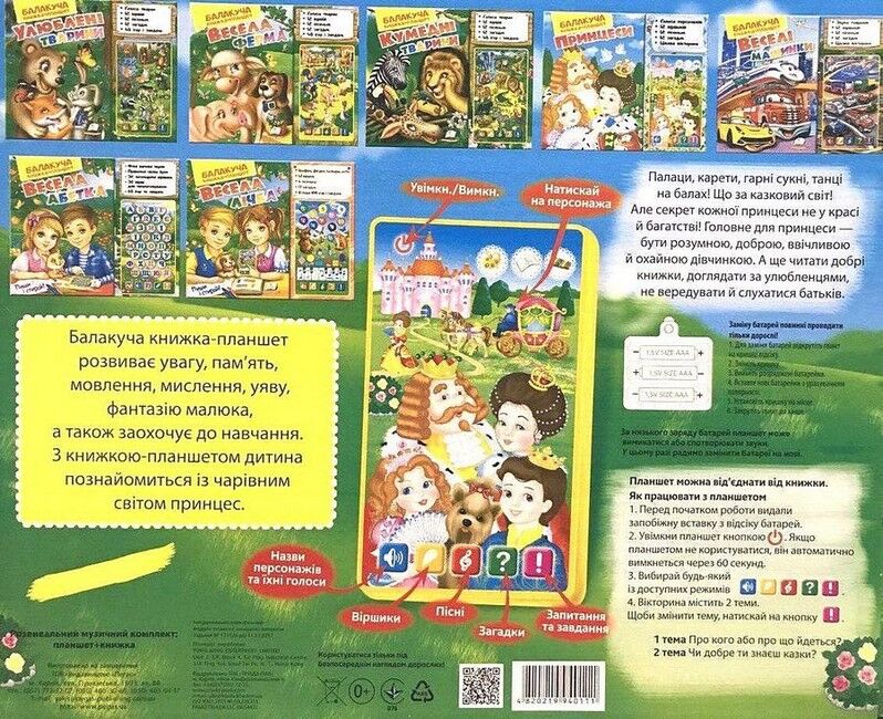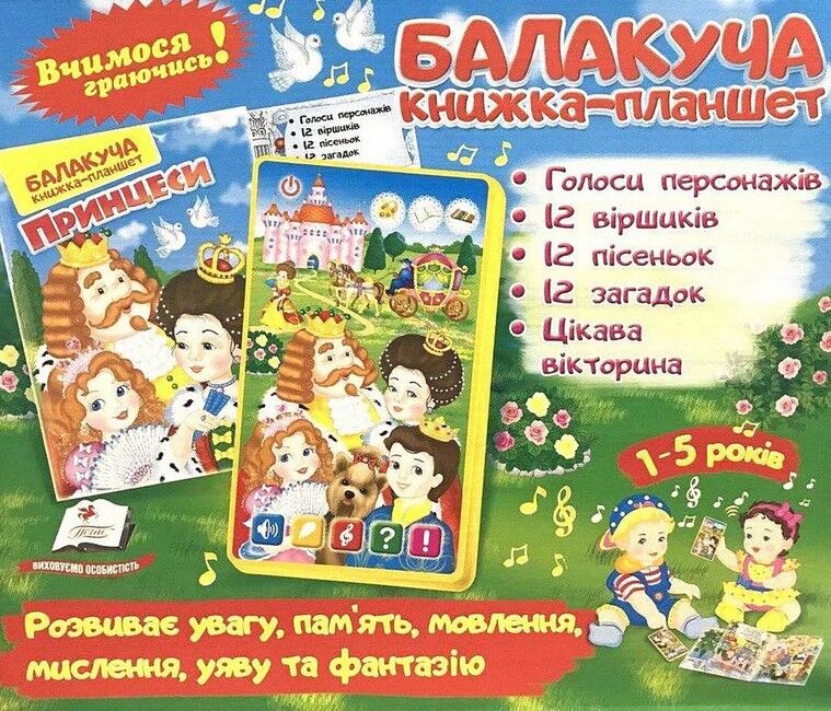 Балакуча книжка-планшет - прекрасний спосіб заохотити малюка до вивчення та дослідження навколишнього світу. Барвиста книга містить цікаві малюнки та віршики. Планшет відтворює звуки, озвучує завдання та запитання, загадки і пісні. Саме такий навчальний комплекс допоможе дитині розвивати увагу, пам`ять, мовлення, мислення, уяву та фантазію.