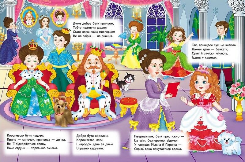 Що за казковий світ! Але секрет кожної принцеси не у красі й багатстві! Головне для принцеси - бути розумною, доброю, ввічливою й охайною дівчинкою. А ще читати добрі книги, доглядати за улюбленцями, не вередувати й слухатися батьків.