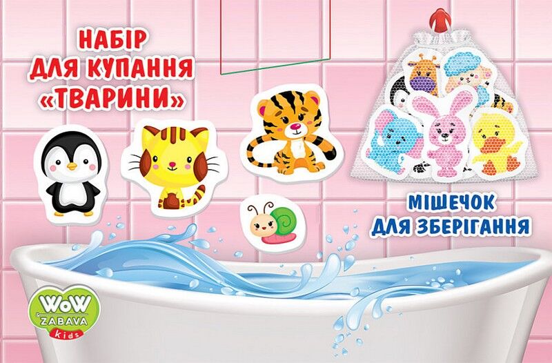 Фігурки змочують водою (кидають в ванну, в тазик, під краном), після цього вони прекрасно утримуються на гладкій поверхні ванни, плитки, дзеркалі. Дитина купається і вивчає тварин. Потім фігурки збираються в мішечок для просушування.
