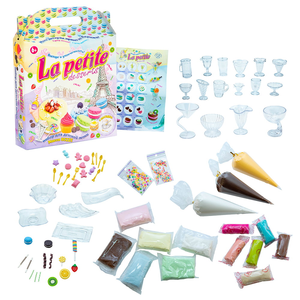 Совместить развлечение с творчеством, развить фантазию и художественные способности малыша поможет набор «La petite desserts». Ваш малыш любит пирожные и сладкие вкусняшки, и ему нравится угощать ими друзей? С помощью набора он сможет создать угощения с настоящим парижским шармом. Из специальной мягкой, воздушной массы Bezze и скульптурного теста можно вылепить массу неповторимых французских сладостей, украшенных декоративными элементами, которые есть в наборе. Нет ограничений в творчестве – необходима только фантазия!
