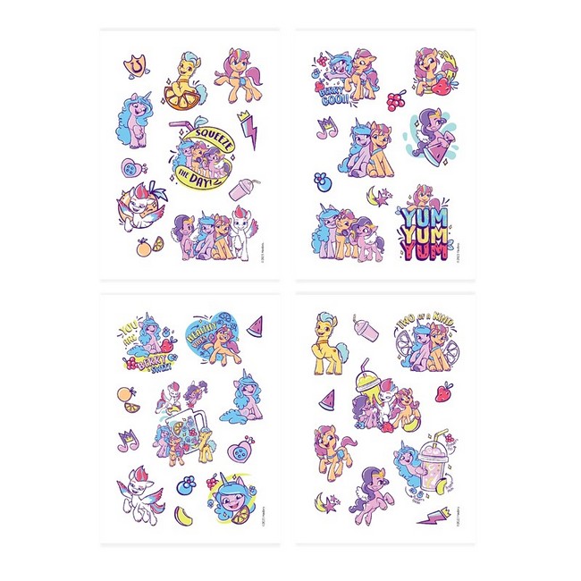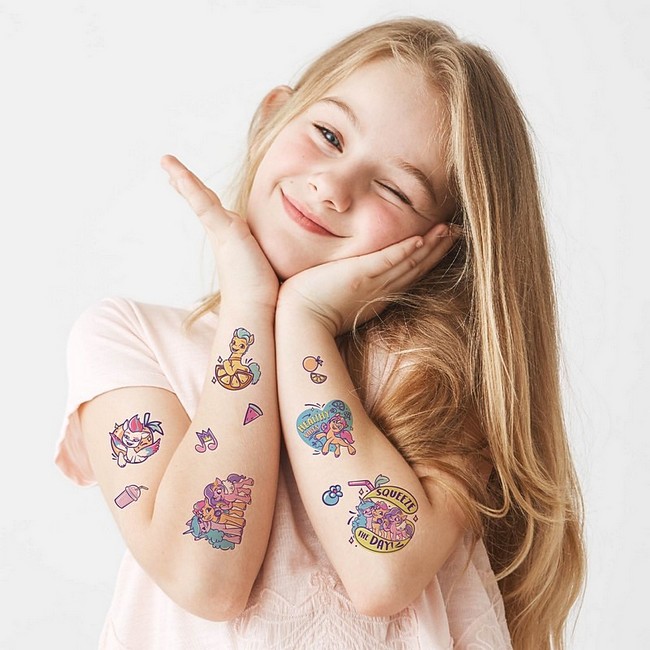 Набір татуювань містить чотири аркуша з милими картинками, які дуже прості у використанні. Усі ілюстрації якісні та оригінальні.