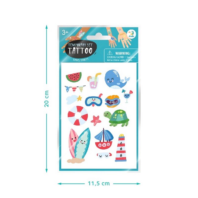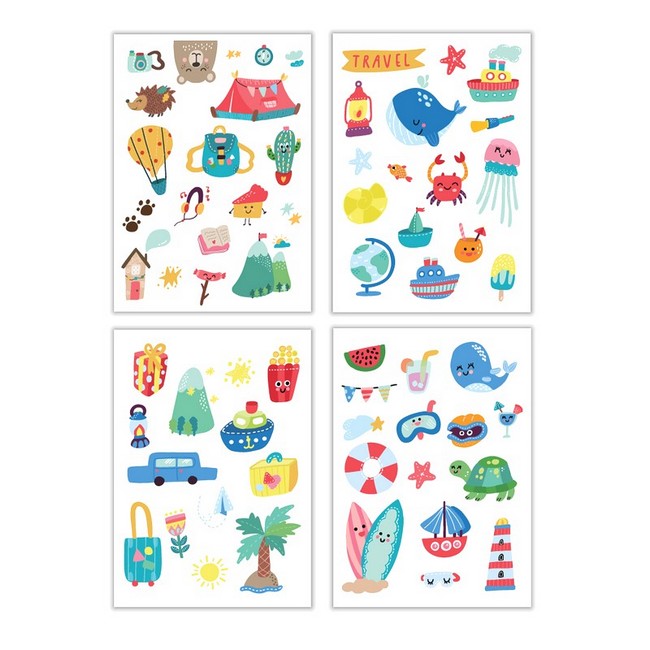 Набір татуювань містить чотири аркуша з милими картинками, які дуже прості у використанні. Усі ілюстрації якісні та оригінальні.