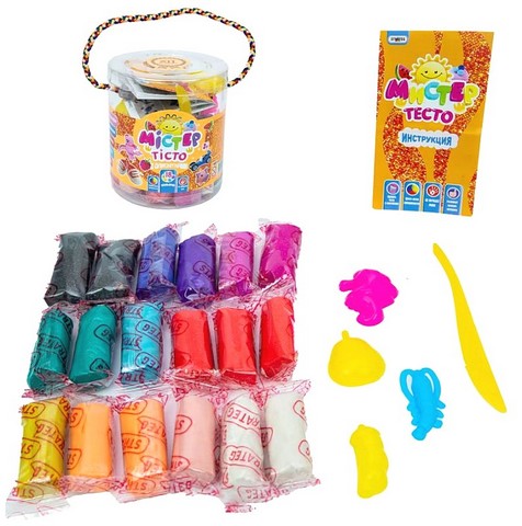 Набір тіста для ліплення "Містер тісто 18 кольорів з блискітками" стане знахідкою для шанувальників фігурок із пластиліну та подібних субстанцій. Він дуже великий - у наборі цілих 18 шматочків різнокольорового тіста. Воно не забруднює руки та є замінником простого пластиліну. І що дуже важливо – маса абсолютно безпечна для малюка.